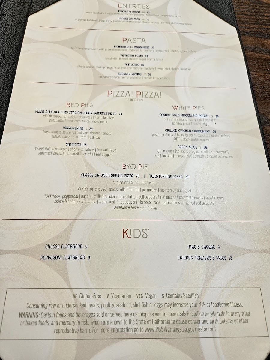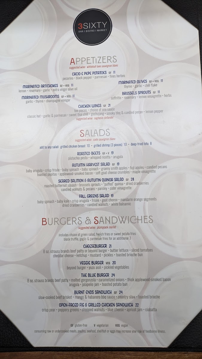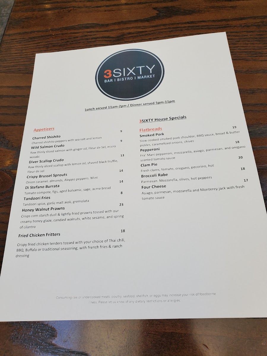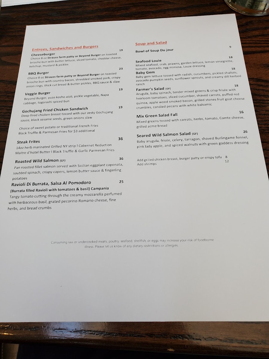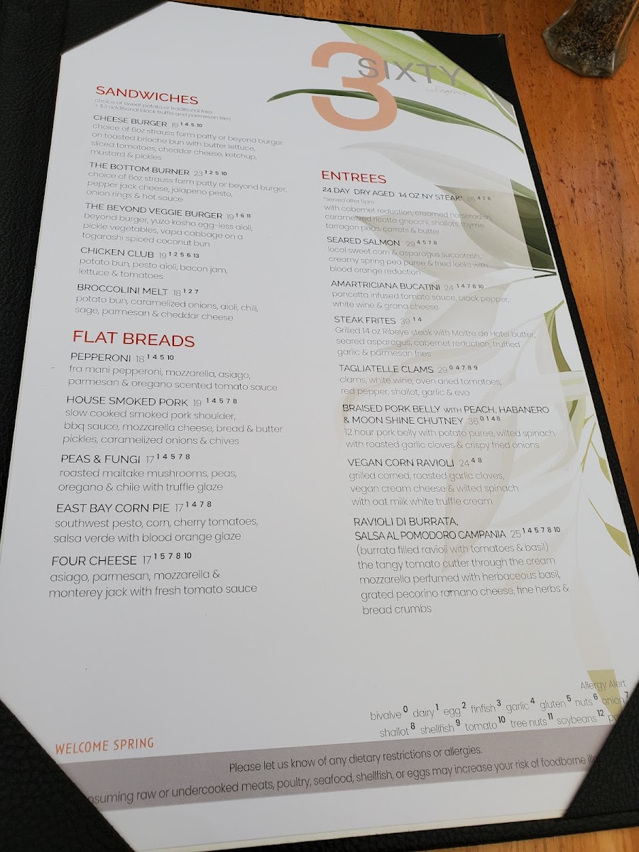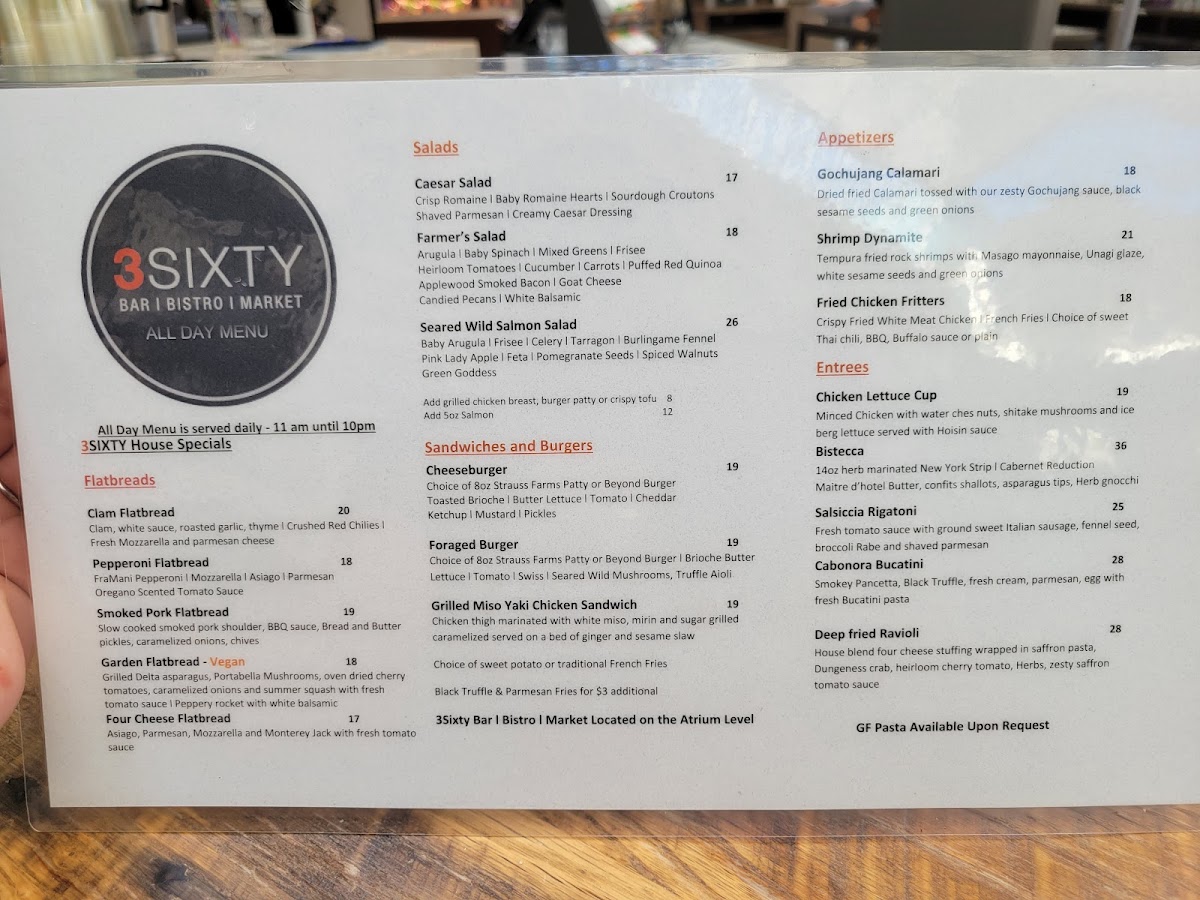 The menu offers a selection of New American cuisine featuring a variety of breakfast, comfort, and alternative dishes alongside bar-style items. It is structured to accommodate different meal times, including breakfast and casual dining options throughout the day.