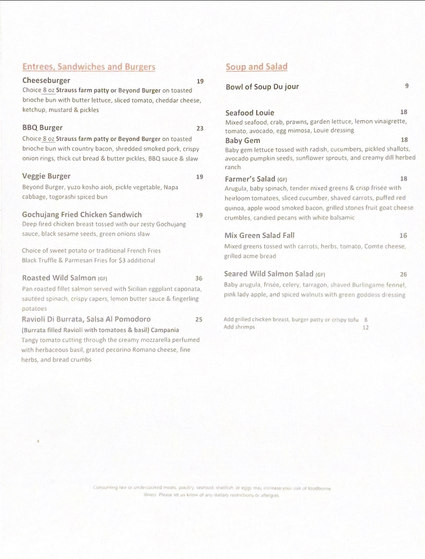 This menu is suitable for casual dining occasions, accommodating both quick orders at the bar and more relaxed meals. The range of dishes supports a variety of preferences, from lighter alternatives to heartier comfort food choices.